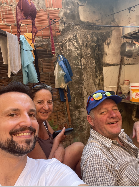 Felix reist bereits seit rund 20 Jahren nach Brasilien und kennt dort viele Leute, denen er bis heute regelmässig Hilfe leistet. Im November / Dezember 2022 reiste Felix zusammen mit Priska und Marc nach Brasilien und war ihr Local Guide. Er zeigte ihnen die schönsten Orte, wo es an nichts fehlte – jeden Tag Sonne, Strand und Meer – wie im Bilderbuch. Am vierten Tag der Reise fragte Felix uns, ob wir mitkommen wollen zu Freunden, die in den Favelas wohnen. In den Favelas leben ein grosser Teil der rund 220 Millionen Brasilianerinnen und Brasilianer. Priska und Marc wollten auch diese Seite von Brasilien kennenlernen. Schon der erste Eindruck war ein Schock. Durch ein kleines Loch in der Tür schauten uns zwei Kinderaugen an und sofort rief das kleine Mädchen «Felix ist hier». Sie öffnete die Tür, liess uns rein und sagte, sie hole sofort ihre Mama, die in der Nähe bei ihrer Mutter und Schwester war und eine Art Kuchen abpackte für den Strassenverkauf. Wir schauten uns in dieser Zeit im Haus ein wenig um und mitten im «Wohnraum» sass das kleine Baby auf dem Fussboden und spielte mit einer Plastikflasche. Ihr 2-jähriger Bruder, welcher auch zuhause war, führte uns durch das Haus. Eine spärliche Küche, ein Tisch, ein Schrank und ein Gasherd. Das Wasser für den Abwasch war draussen, wo auch alle Kleider von Hand gereinigt werden. Im Zimmer von Bia war eine kleine alte Matratze am Boden, sonst nichts. Im Zimmer der Mutter schlafen auf einem schmutzigen Bett das kleine Baby, der kleine Junge und die Mama, irgendwie erbärmlich. Diese Frau mit ihren 3 Kindern hat nichts. Aber dort geht es nicht nur dieser Familie so, sondern allen die dort leben.