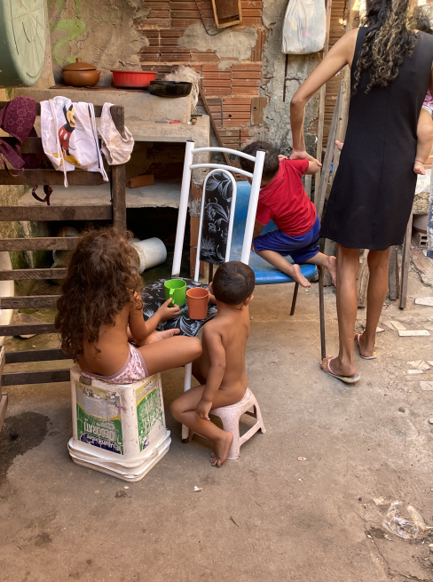 Sie lebt mit ihrer Familie in den Favelas und hat nicht die Möglichkeit eine Schule zu besuchen.